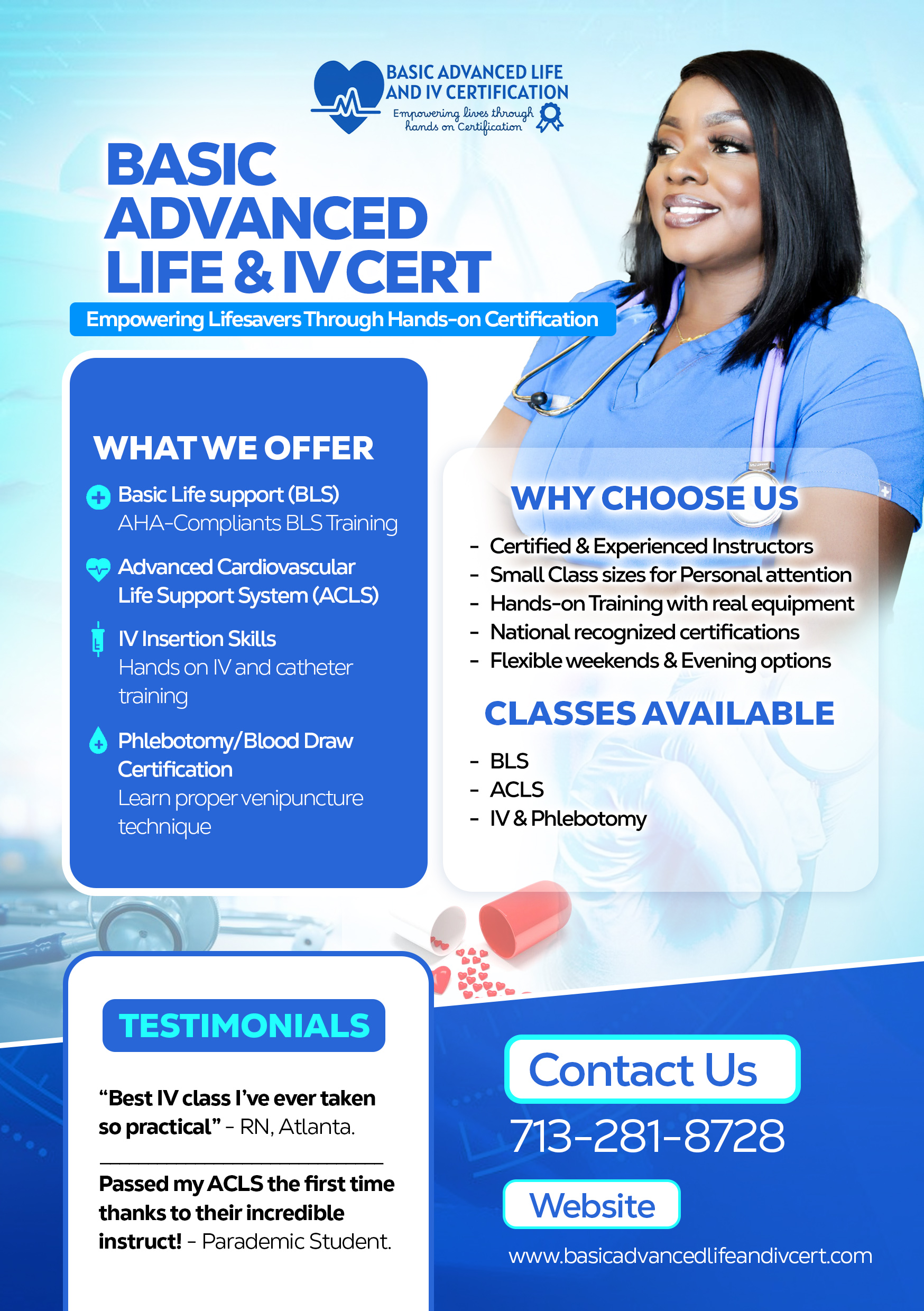 BLS, ACLS, IV Insertion & Phlebotomy Courses Designed for Healthcare Professionals & Students